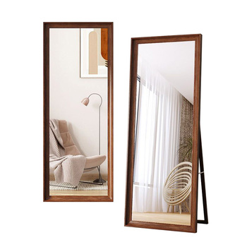 بيع بالجملة حلاقة بحجم كامل قائمة خشبية طويلة أرضيات خشب الجوز طويلة حائط ديكور المنزل غرفة المعيشة مرآة تزيين لا تُكسر مرآة تزيين